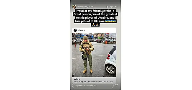 "Fier de mon ami. Une grande personne, un des plus grands joueurs de tennis ukrainiens, et un vrai patriote de l'Ukraine", écrit Malinovskyi sur son compte Instagram.