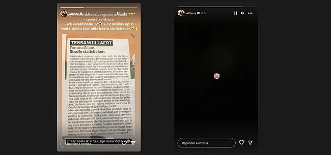 Sur son compte Instagram, la Belge a publié une première story dans laquelle on peut voir un article qui énumère ses statistiques. Elle rappelle notamment qu'elle a largement participé au doublé d'Anderlecht ainsi qu'à la qualification pour l'Euro des Red Flames.